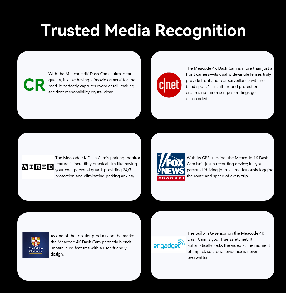 Meacode 4K Dash Cam: With a perfect fusion of crystal-clear 4K video and intelligent safety features, you can secure every journey and drive with unwavering confidence.