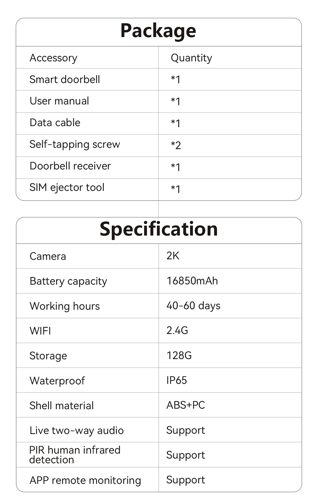 - Remote Convenience:View and communicate outside your door anytime, anywhere via your phone, bringing convenience to your daily life.