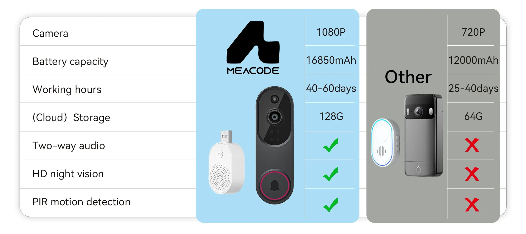 The Meacode Video Doorbell Camera was the result. With advanced AI detection and HD night vision, it ensures your home is reliably protected, day and night. Meacode's core mission is to never let you down and to always keep your family safe.